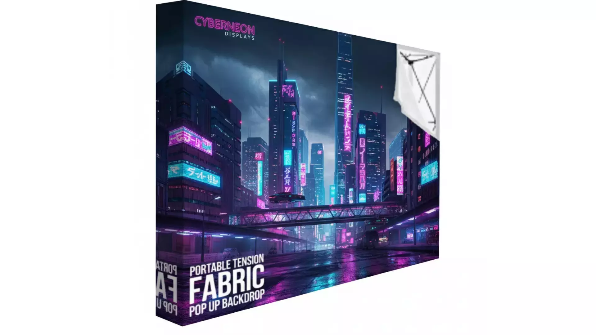 Tek parça kumaş baskı, kenarlarında bulunan güçlü cırt cırt (velcro) sistemi ile iskeletin çevresine mükemmel bir şekilde tutunur ve gerilir. Bu sistem, sarkma veya potluk olmadan, daima profesyonel bir duruş sağlar.